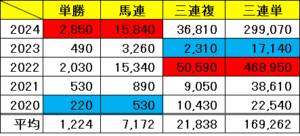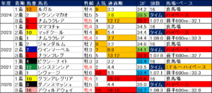 枠は真ん中から内枠が優勢。1枠は4年連続で馬券になっている。