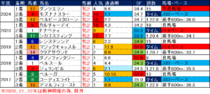近年、素質馬はアルテミスSに流れる傾向があるのか、メンバーが手薄になっています。結果、昨年、一昨年と大荒れという結果になっていますね。