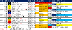 以前は上がり3ハロン35秒前後かかるようなレースでしたが、年々速い末脚が問われるスピード重視のレースへと変貌を遂げつつあります。昨年は久々にペースが流れて、スタミナが問われるレースになり、大荒れとなりましたが、基本はこの流れは続くかなと思います。