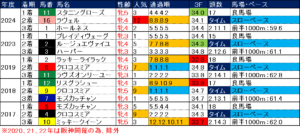 なかなか比較が難しいのですが、過去を紐解くと、当然の事ながら牡馬混合の中距離路線で戦ってきた馬は強いです。GⅠ等、高レベルの牡馬混合レースであれば、大敗していても気にする必要はないと思います。単に戦績がキレイな馬を重視するのではなく、レースレベルをしっかり精査したいところです。