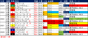 かなり適正が問われるコースですね。過去は中山で実績のある馬が結果を残しています。リピーターはもちろん、中山の実績はしっかりチェックしたいところです。